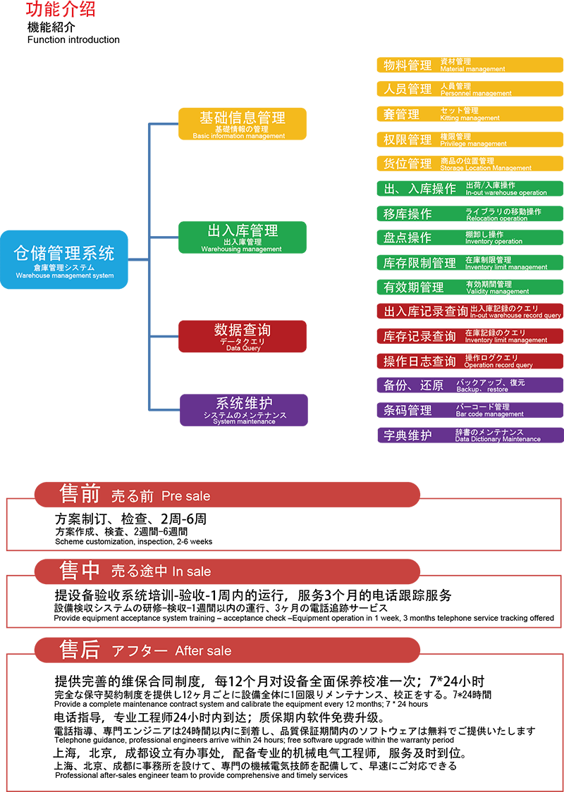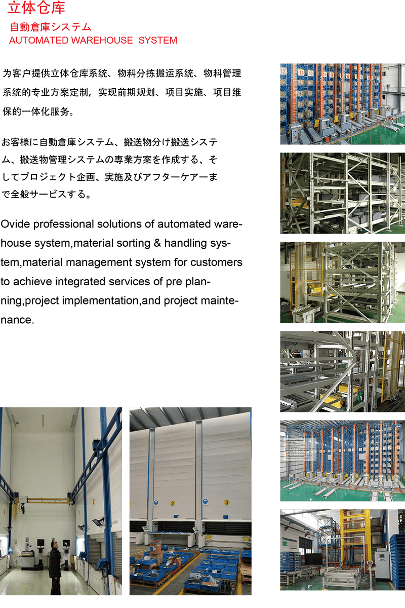 Công ty chuyên cung cấp các giải pháp chuyên nghiệp cho các hệ thống kho ba chiều tự động, hệ thống xử lý và sắp xếp vật liệu và hệ thống quản lý vật liệu. Các giải pháp này được tích hợp đầy đủ, đảm bảo rằng mọi giai đoạn của quy trình, từ thiết kế và thực hiện đến hỗ trợ liên tục, được đề cập. Với sự hiểu biết sâu sắc về nhu cầu của khách hàng, các dịch vụ của WUXI Huiqian có thể tùy chỉnh, đảm bảo rằng mỗi hệ thống được điều chỉnh để thực hiện tối ưu.