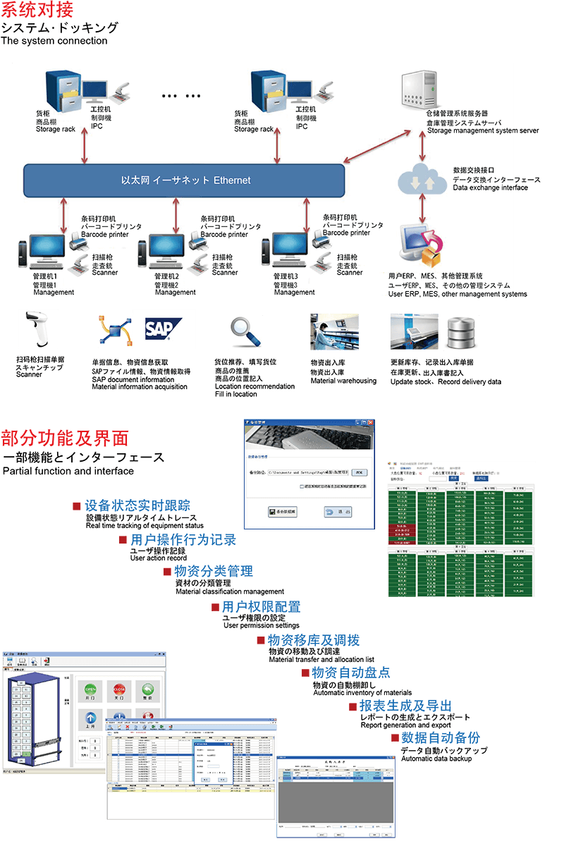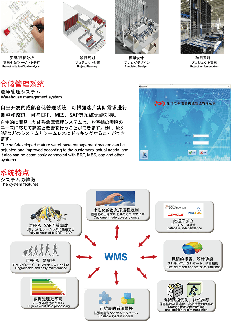 Phương pháp tiếp cận trung tâm của WUXI Huiqian là Hệ thống quản lý kho tiên tiến (WMS), một nền tảng linh hoạt có thể được tùy chỉnh để đáp ứng nhu cầu cụ thể của mỗi khách hàng. Hệ thống tự phát triển này tích hợp liền mạch với ERP, MES, SAP và các công cụ quản lý kinh doanh khác, cho phép theo dõi thời gian thực, kiểm soát hàng tồn kho và khả năng hiển thị dữ liệu nâng cao. Bằng cách cung cấp các tính năng mô-đun như quản lý lưu trữ trong và ngoài, bảo trì hệ thống và khả năng truy vấn dữ liệu, WMS hỗ trợ các doanh nghiệp trong việc quản lý mọi thứ, từ các chức năng kho cơ bản đến các nhiệm vụ hậu cần phức tạp hơn.