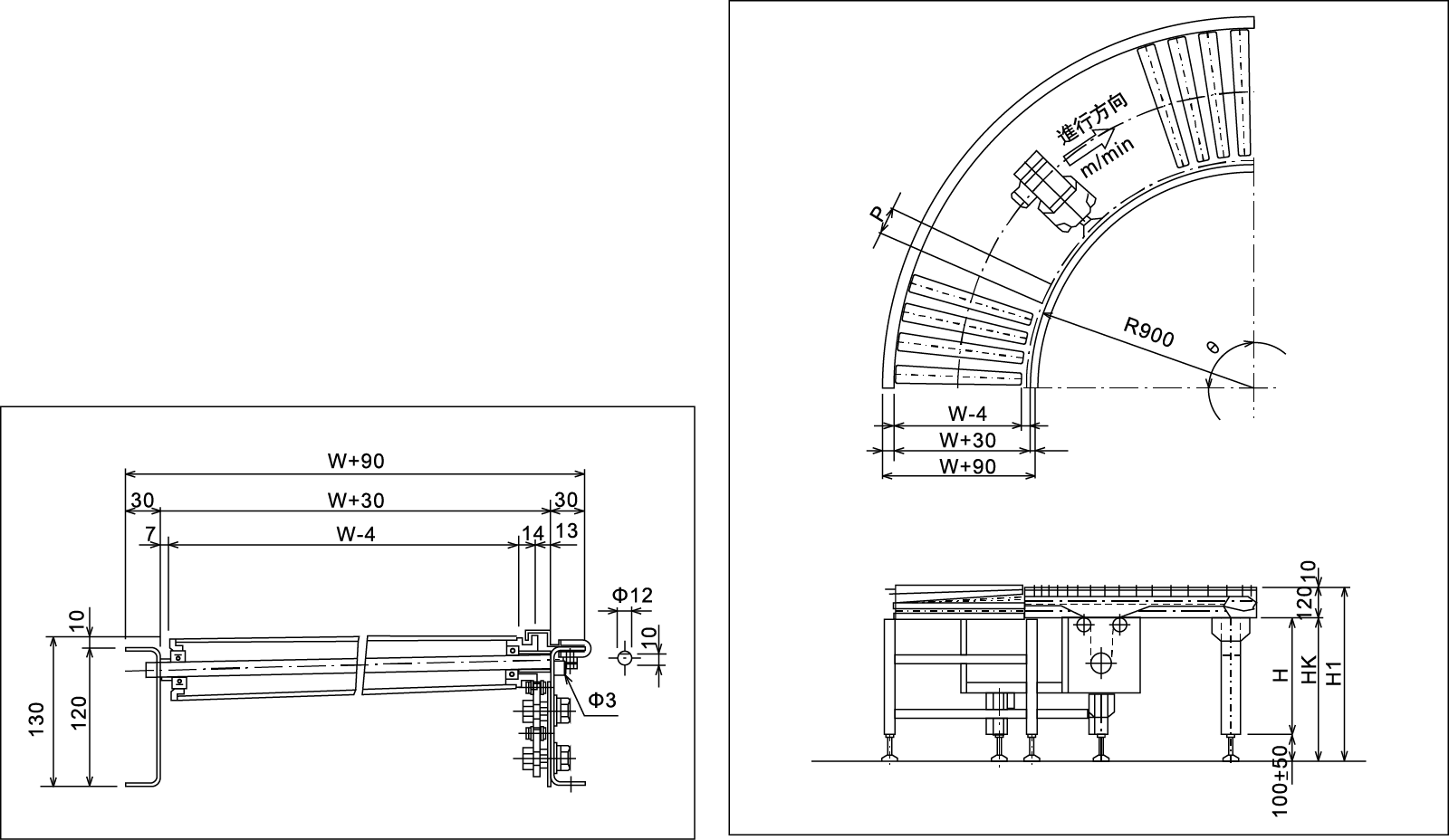 | Chiều rộng con lăn | W (mm) | 300 ~ 800 |