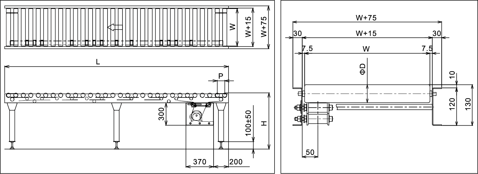 Còn được gọi là băng tải lăn đai ma sát, nó được cung cấp bởi một vành đai ma sát và phù hợp để vận chuyển các vật dụng nhẹ, có kích thước lớn như bảng gỗ, tấm sóng và vật liệu composite. Nó đơn giản, dễ cài đặt và duy trì.
