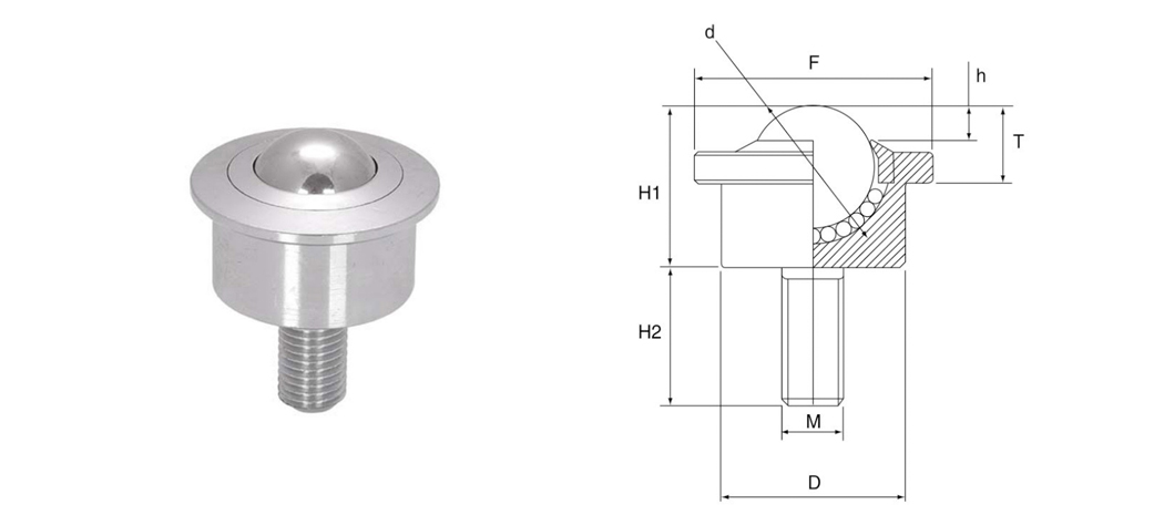 | d | D | F | h | T | H1 | H2 | M | |||||