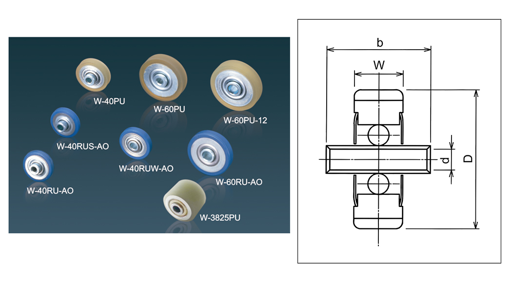 | W-36pw | 36 × 9 × 8 × 14 | M8 × 55L | 46,3 × 60 × 33 × 71 × 1.6 2.3 | 52.3 | 1800 · 2400 · 3000 | 50 · 75 · 100 · 150 | 10 | Pom |